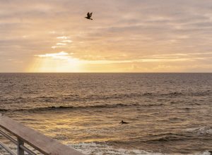 Sunset gleamed off the Atlantic Ocean, blazing the crest of every wave. Late, and the Florida beach…