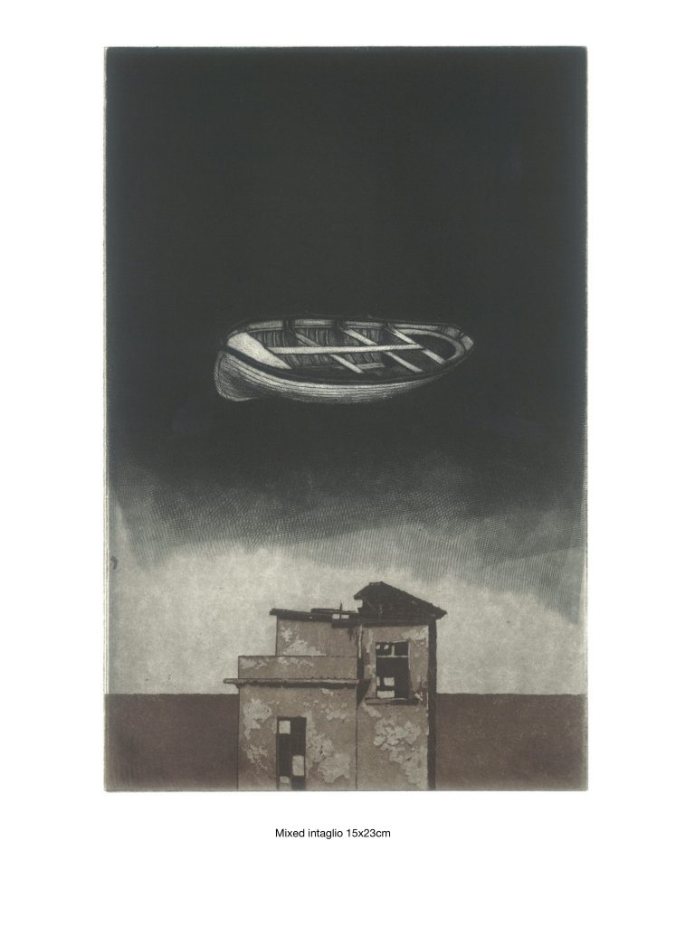 His preferred technique is printmaking.