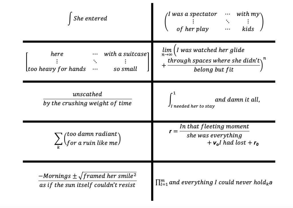 We’re often told that mathematics and poetry orbit in entirely different systems: the logic of math in one constellation, the lyricism of poetry in another.