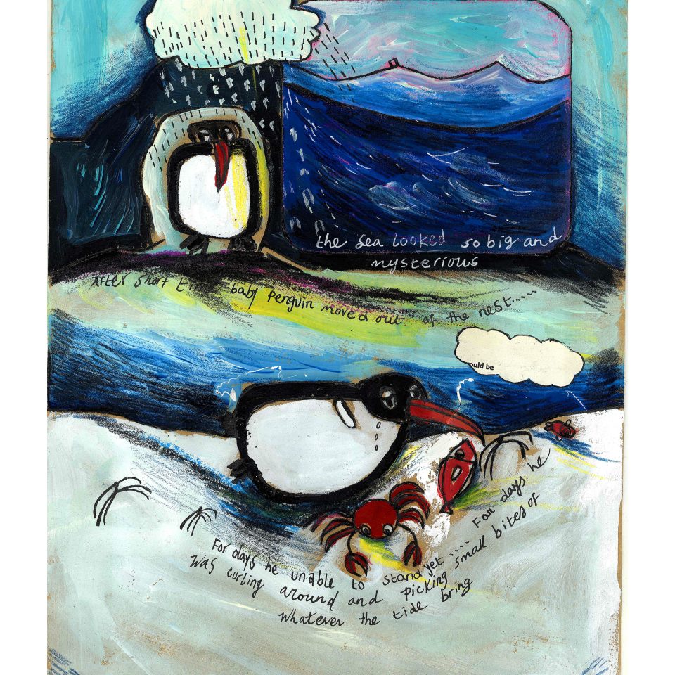 But what was also clear was that the Baby penguin was only a baby gazing at the sea and did not know what to do—until a high wave came along and carried the lonely penguin into the sea.
